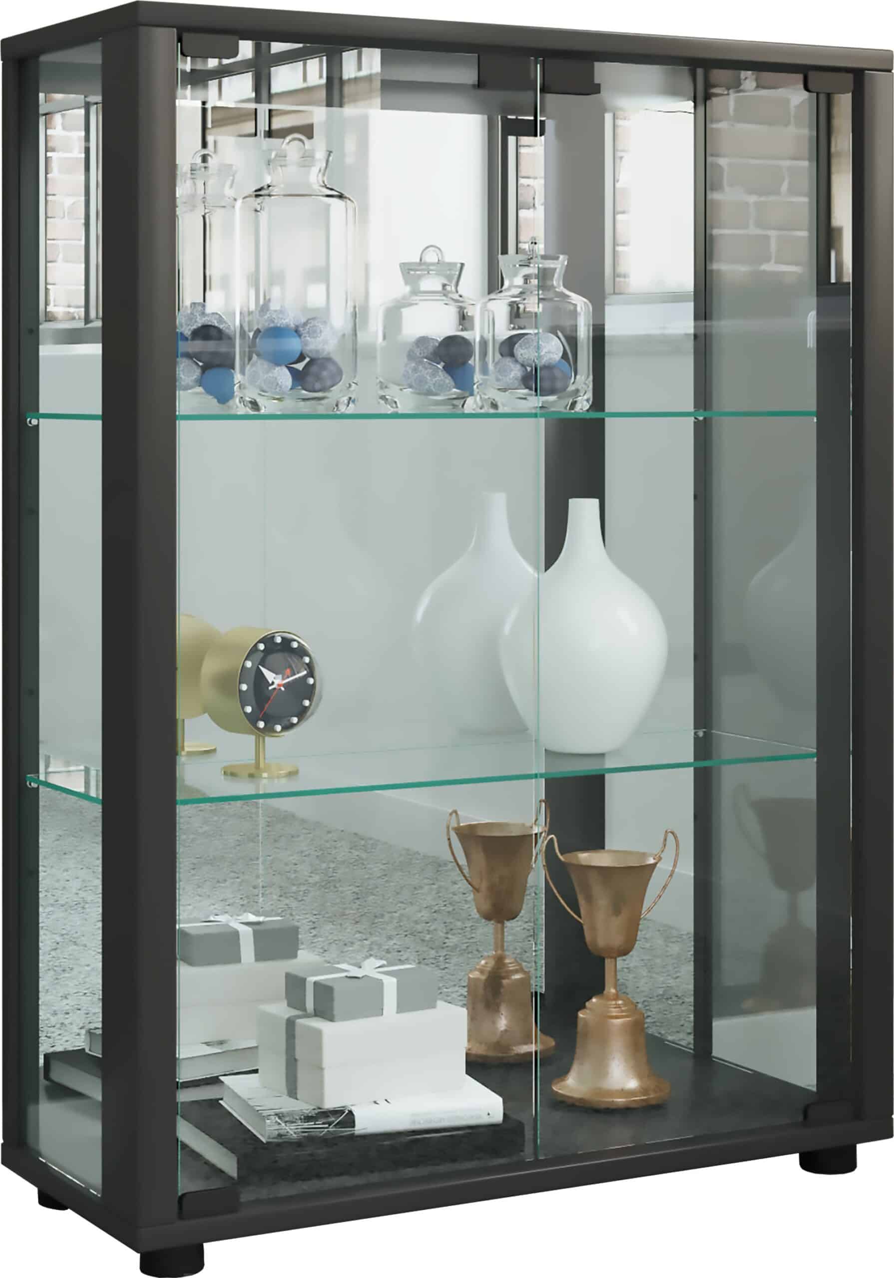 Højdepunkter: – Dør, sidepaneler og hylder af hærdet sikkerhedsglas – Hurtig og sikker vægmontering – Ramme af imiteret træstruktur – Stabilt bagpanel med spejl – To variable hylder – Med LED-belysning (energieffektivitetsklasse F) – Mål H. 80 x B. 60 x D